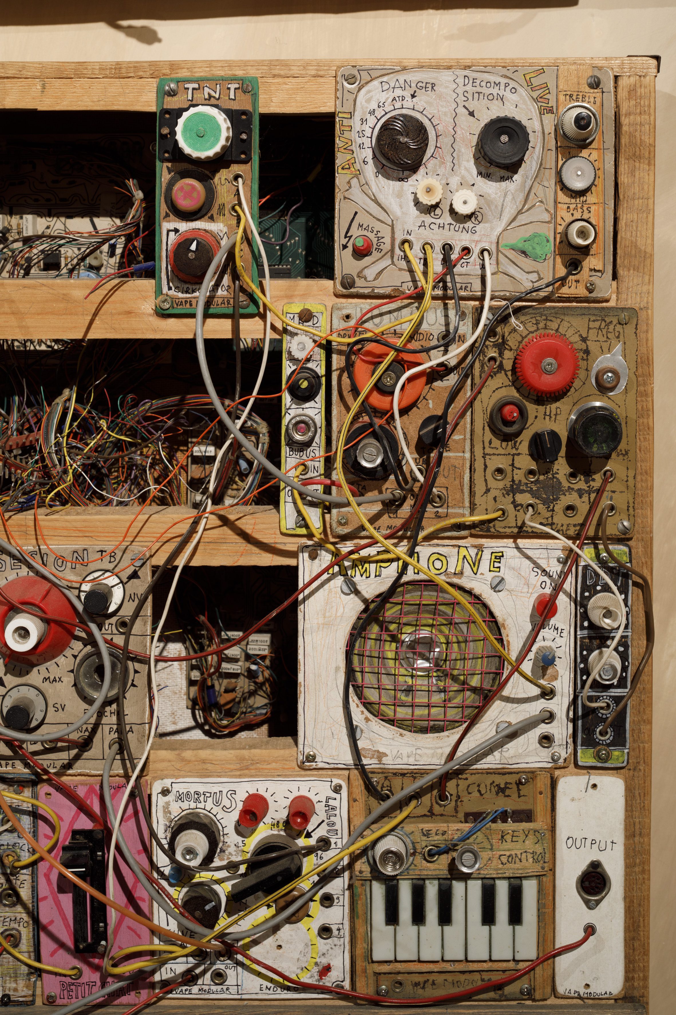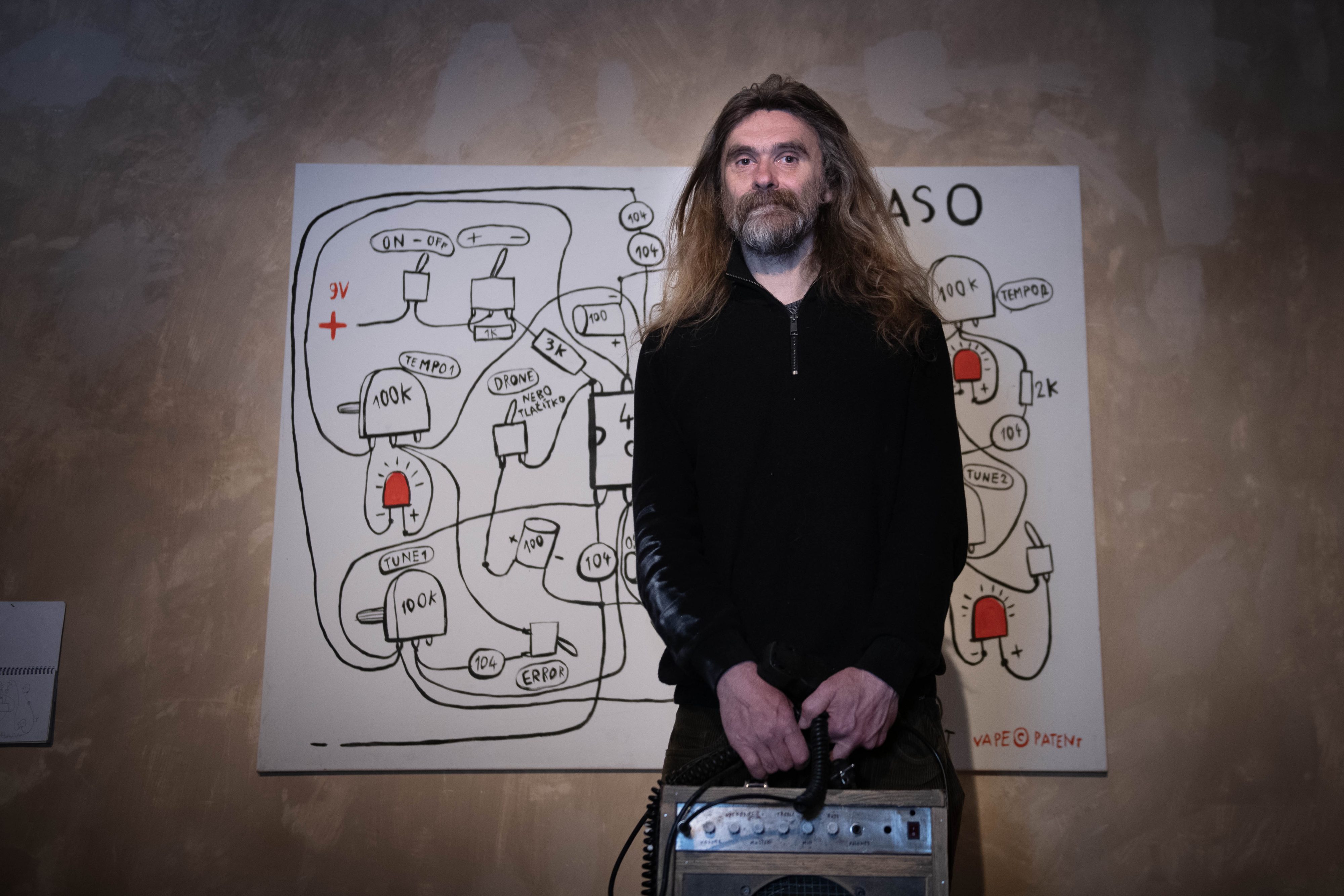 Nedílnou součástí výstavy jsou Válkovy vlastnoručně vyráběné nástroje, syntezátory a kinetické objekty. Vznikají intuitivně, bez technického školení, z běžně nalezených materiálů jako hybridní útvary na pomezí sochy, hudebního nástroje a rituální pomůcky. Autor k živelně vzniklým syntezátorům vytváří posléze dokumentační kresby, v nichž si archivuje záznamy myšlenek a principů, na jejichž základě byly vytvořeny tyto rukodělné experimenty. Schematické kresby obsahují i excentrické či poetické popisy zvuků, které objekty vydávají – jazyk se zde stává další vrstvou díla. Interaktivní charakter těchto artefaktů umožňuje divákům vstoupit do výstavy fyzicky, prostřednictvím dotyku, hry a hluku. Zvuk zde není pouhým doprovodem obrazu, ale hlavním nositelem významu.